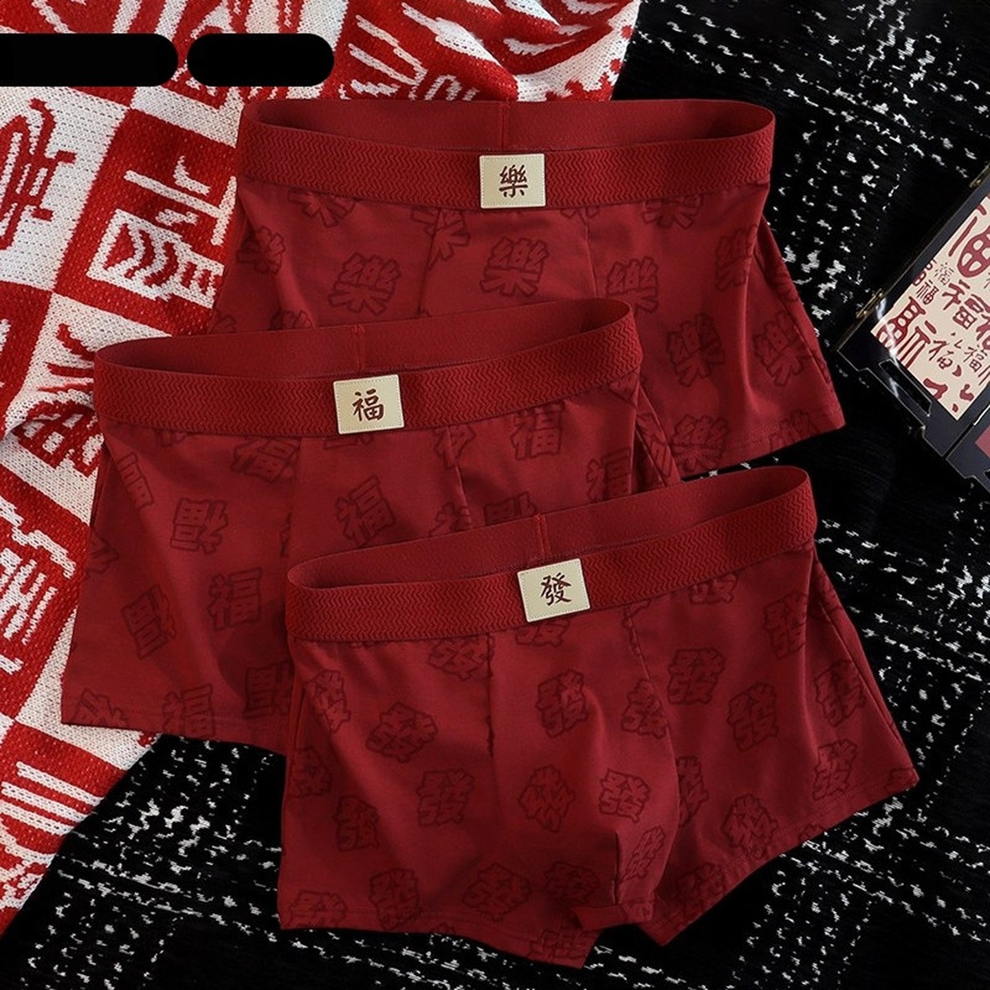 CookieKoala905男士红运内裤大红色礼盒10A抑菌棉感裤平角内裤男
