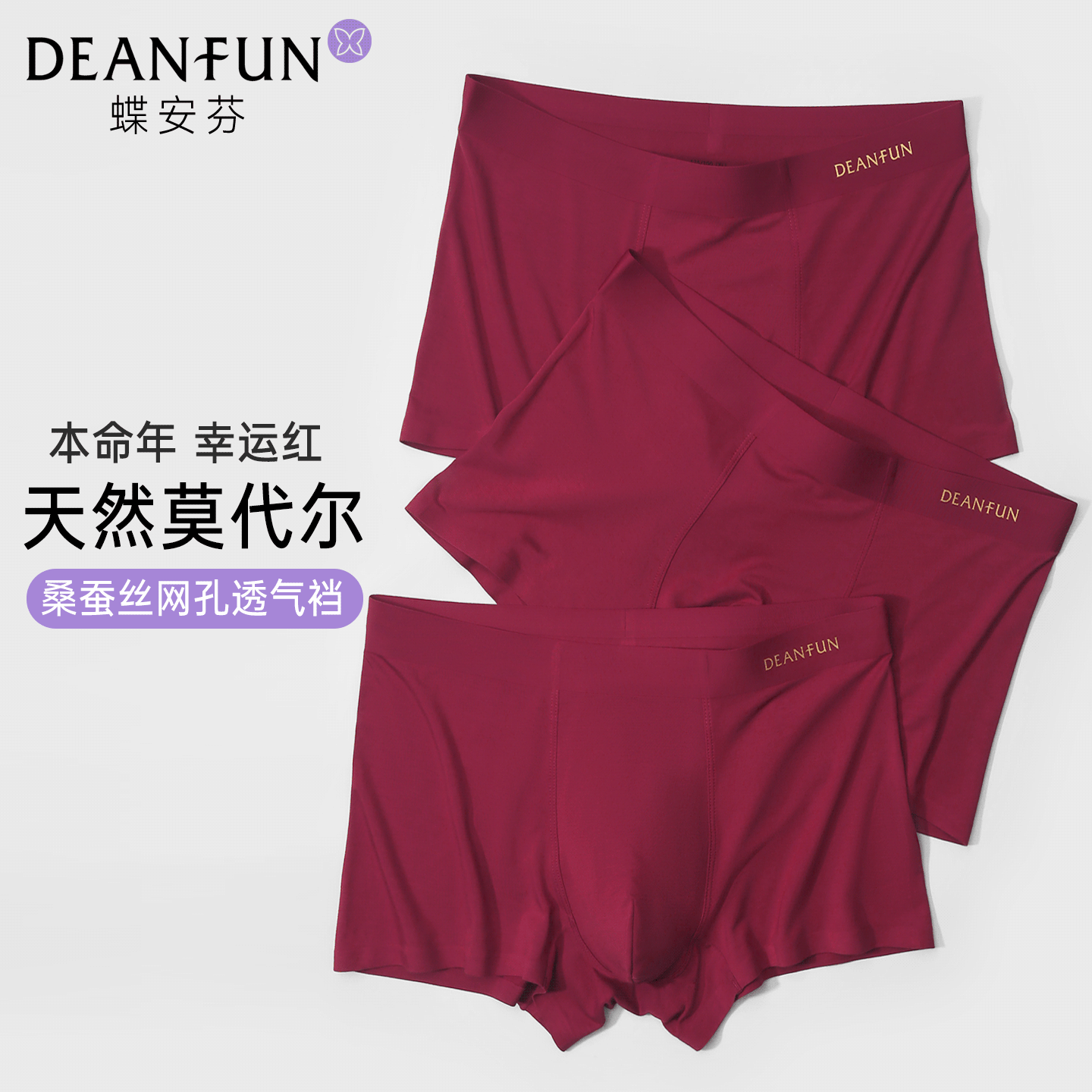 蝶安芬红色男士内裤莫代尔抑菌桑蚕丝网孔透气裆本命年结婚四角裤