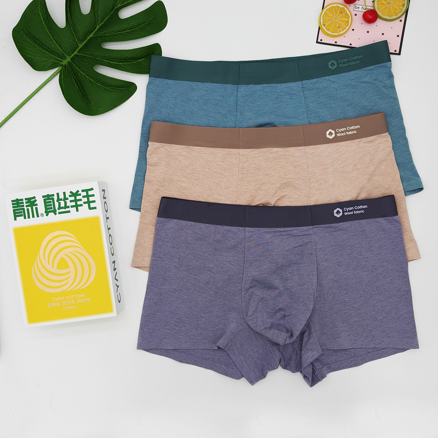 3条装青系真丝羊毛男士平角内裤10A抑菌莫代尔棉舒适透气中腰短裤