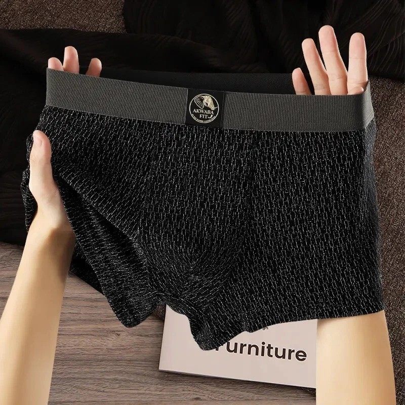 冰丝华杰龙纹理亲肤新款男士内裤纯色中腰男大码透气男士平角裤衩