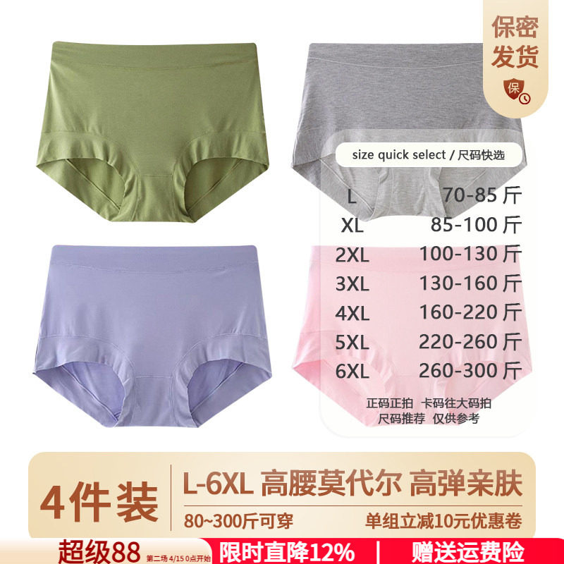 4条装莫代尔内裤女棉内裤中腰高腰内裤收腹透气三角裤加大码内裤
