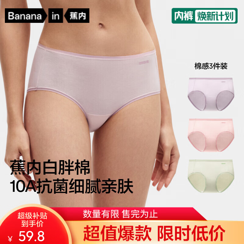 蕉内银皮338S女士内裤纯棉10A抗菌40支白胖棉透气防夹臀中腰三角裤3件 青瓷+慕斯粉+粉紫 L