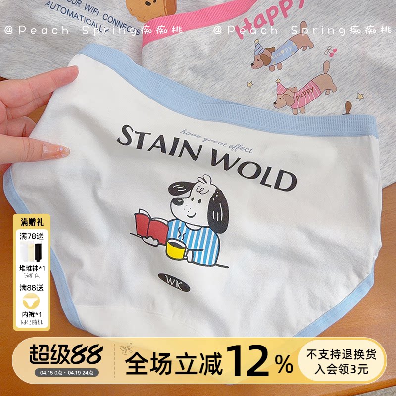 「粉果气泡」多巴胺撞色2026夏薄可爱纯棉裆少女中腰内裤10a抑菌