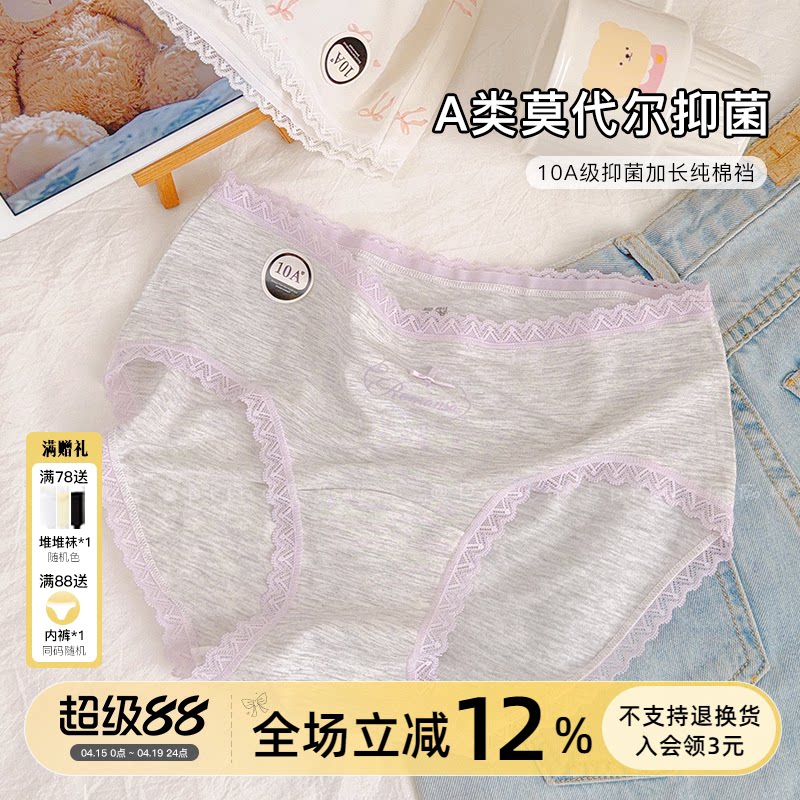 「涂鸦画本」A类莫代尔女生内裤轻盈透气纯棉加长裆10A抑菌不勒热