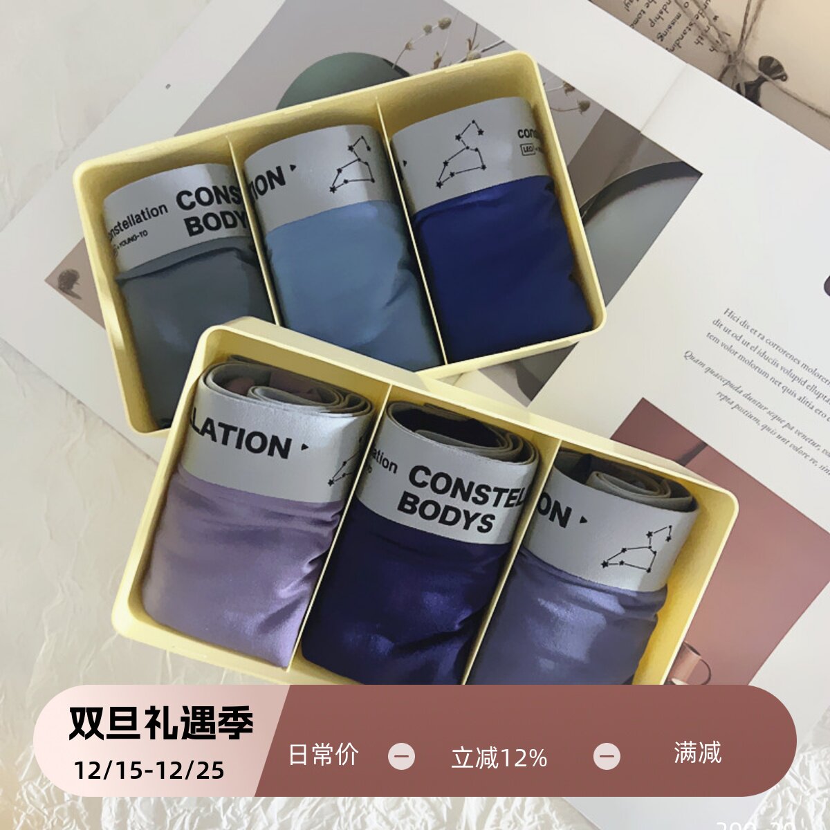 棉花共和国男棉质中腰平角两条装四角裤青年内裤学生内裤01121611