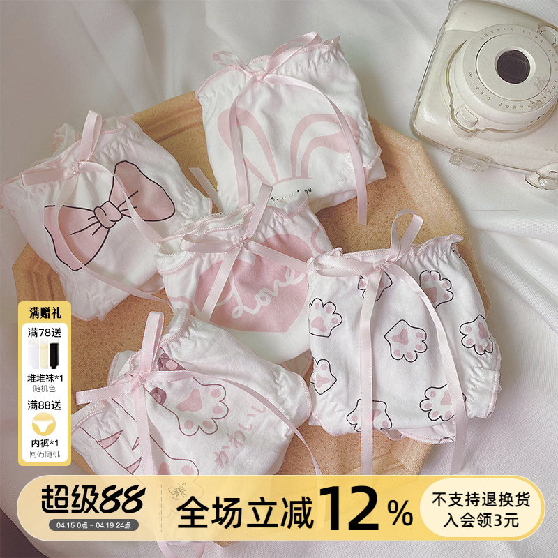 5条日系少女三角裤可爱软妹面包裤中低腰透气全棉学生纯棉裆内裤