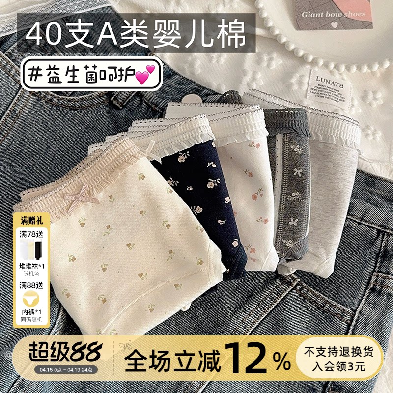『可爱侵略』甜美少女纯棉内裤A类婴儿棉春夏7A抑菌加长裆2026新