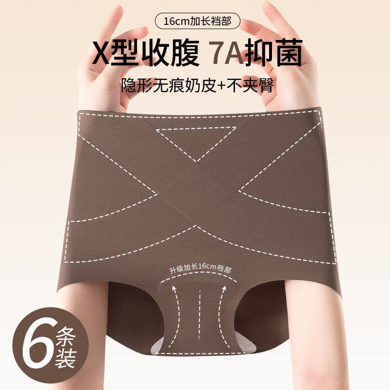 X微压收腹无痕高腰女士收腹内裤7A桑蚕丝加长内裆加大码三角内裤
