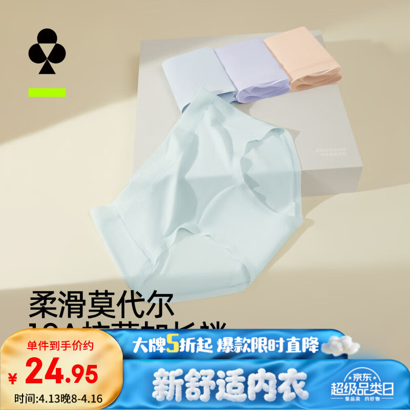 有棵树女士内裤女莫代尔10A抗菌加长棉裆高弹透气丝滑亲肤女生三角短裤 海冰蓝+香槟肤+罗兰紫 3条 L