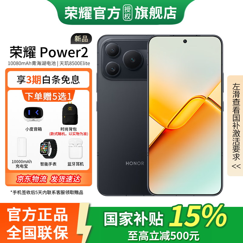 荣耀 Power2 新品5G手机 10080mAh青海湖电池 天玑8500 Elite 电梯信号 5G AI 长续航手机 幻夜黑 12GB+256GB 官方标配