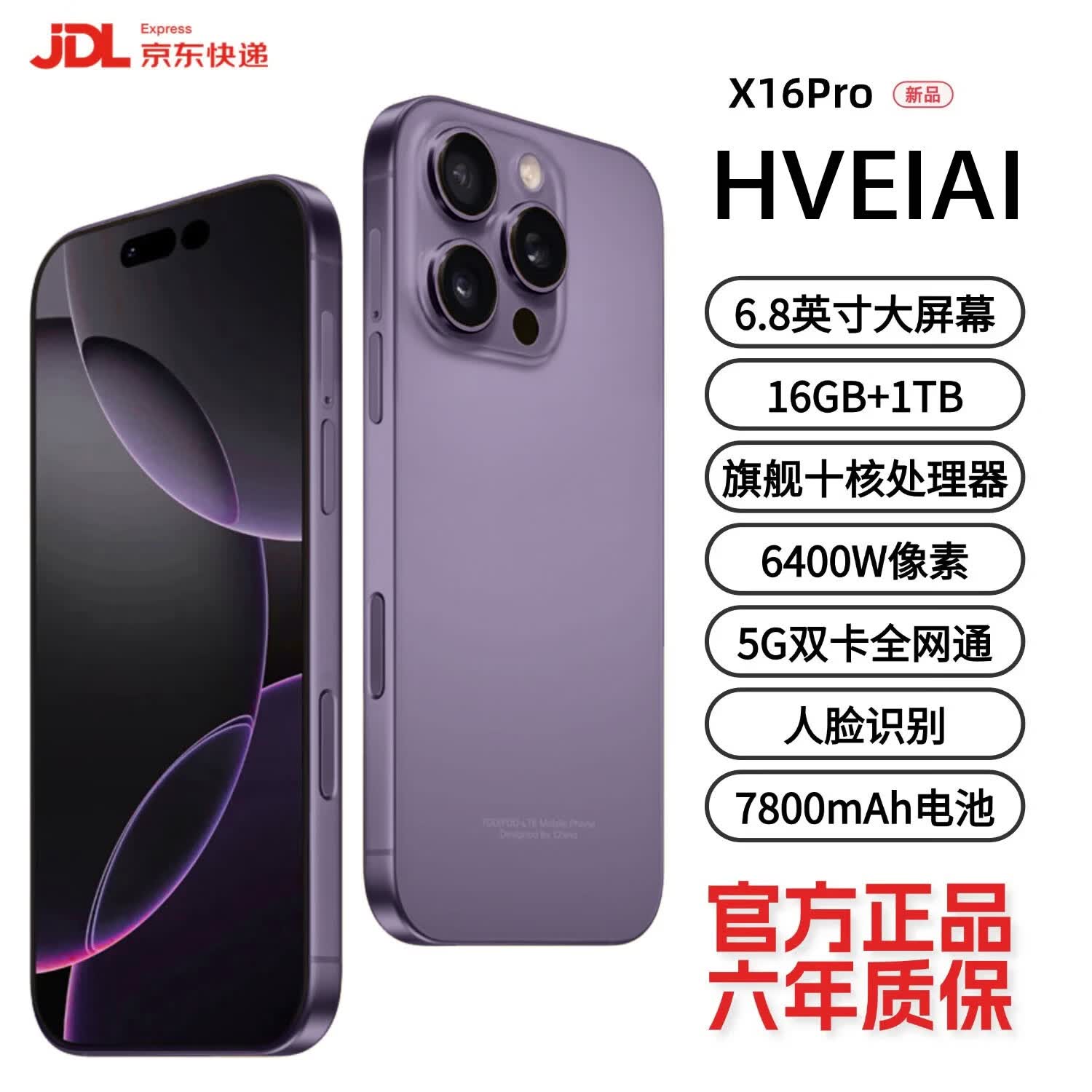 HVEIAI手机2026新品6年质保5G全网通1TB超大内存7800mAh快充大电池电竞抗摔防水护眼高性能6800W拍照 钛紫色 16GB+512GB 官方标配