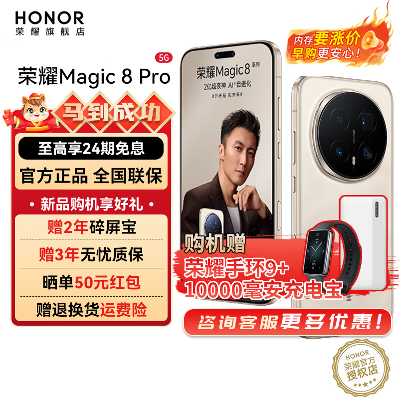 荣耀Magic8 Pro 【国家补贴】新品5GAI手机 第五代骁龙8至尊版 YOYO智能体 超夜神长焦 谢霆锋同款 旭日金砂 16GB+1TB【2年碎屏险】 官方标配