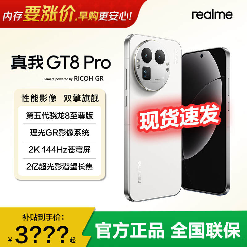realme【国家补贴15%】真我GT8 Pro 第五代骁龙8至尊版 电竞独显芯片 拍照电竞oppo手机 怀特 · 白色 16+512GB 官方标配