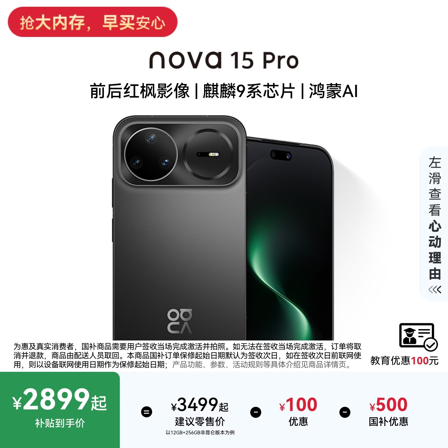 华为nova 15 Pro 麒麟9系芯片前后红枫影像6.9mm超薄机身北斗卫星消息直屏华为手机 幻夜黑 512GB 昆仑玻璃