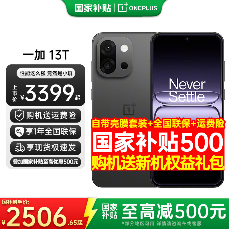 一加【国家补贴】一加13T 新品游戏智能骁龙8至尊版旗舰小屏电竞续航拍照一加13升级一加13t手机 云墨黑 12+256 官方标配