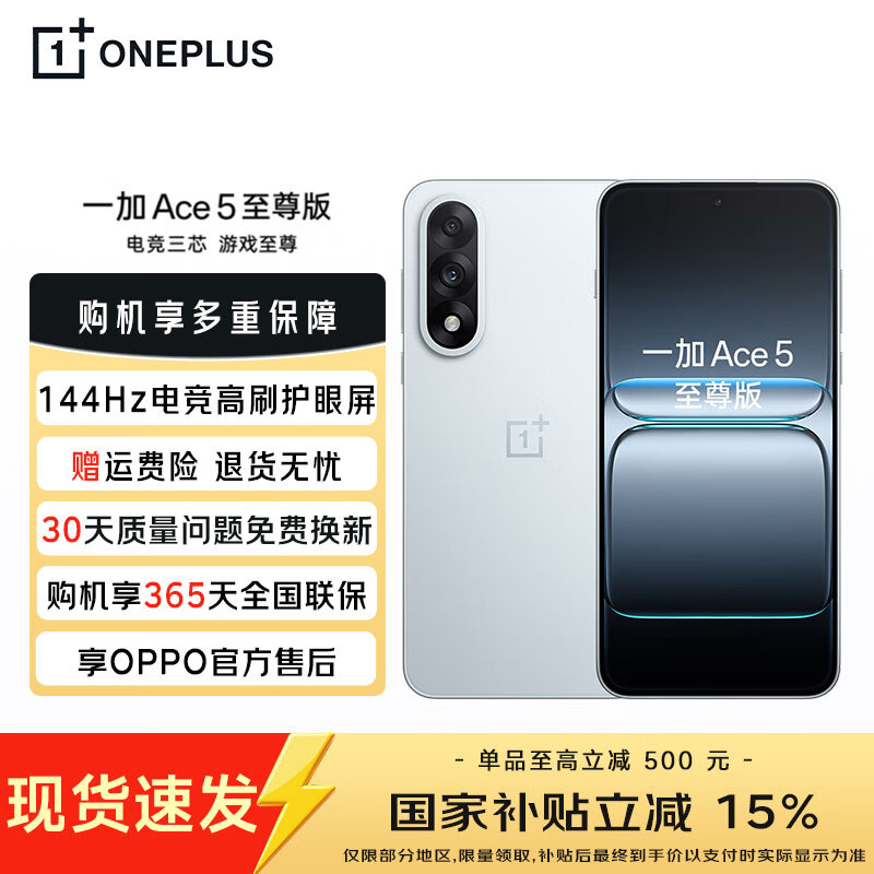 一加【国家补贴减15%】一加 Ace5 至尊版 新品游戏性能手机 一加 ace5 至尊 天玑9400+旗舰芯 清风蓝 12GB+256GB