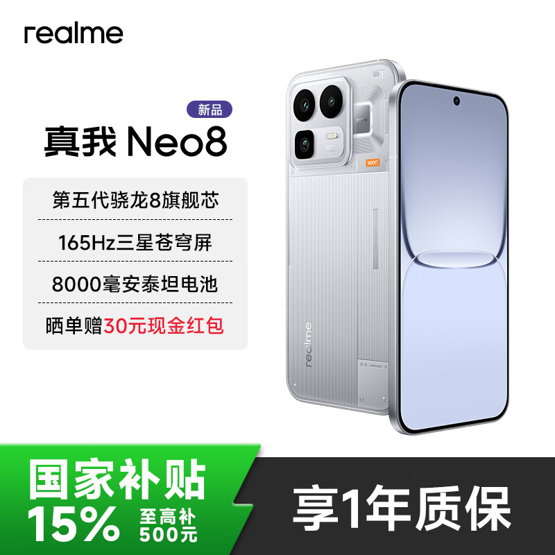 真我(realme)OPPO真我 Neo8 新品手机【国补购机赠豪礼】第五代骁龙8芯片165Hz三星屏智能AI畅玩PC游戏电竞手机 起源白 12GB+256GB