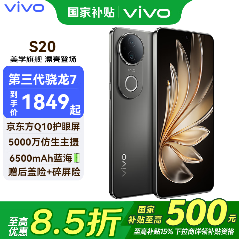 vivo S20 国补专享 轻薄 5G手机 松烟墨 8G+256G 官方标配 全网通