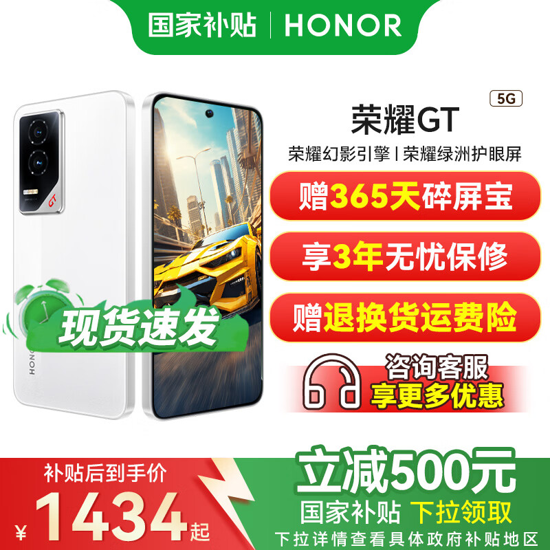 荣耀GT 【国家补贴】新品5G手机 冰晶白 12GB+256GB