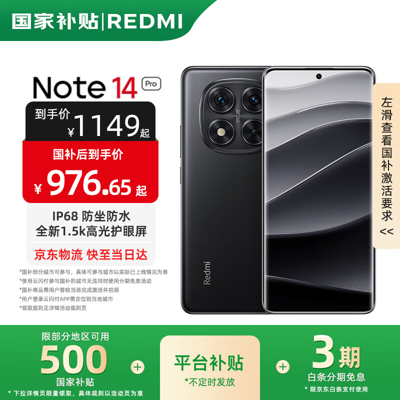 小米REDMI 红米Note14Pro 国家补贴 新品5G小米红米手机 子夜黑 8GB+128GB