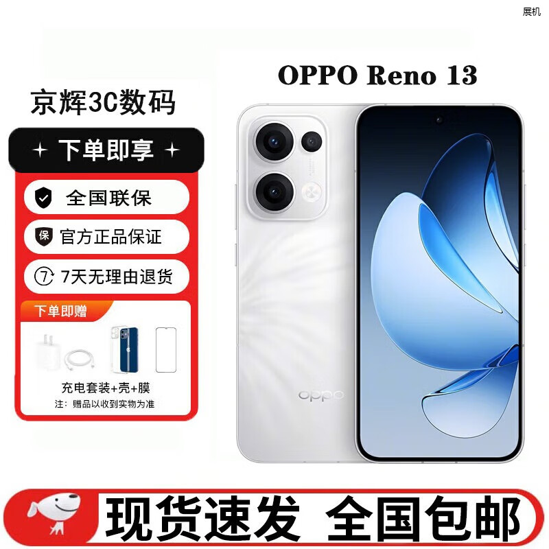 OPPOReno13 超美小直屏AI高清展机实况照片 IP69满级防水 5G智能手机 心动白 12GB+256GB 单机+第三方充电器+店保一年