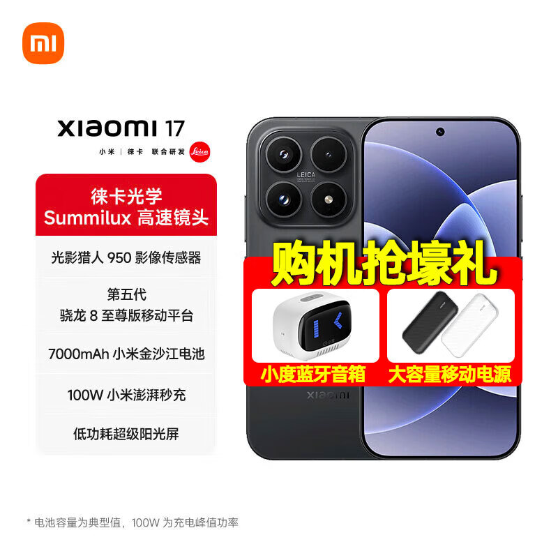 小米(MI)17 第五代骁龙8至尊版 光影猎人950 7000mAh小米金沙江电池 新品5G手机 黑色 16GB+512GB 官方标配
