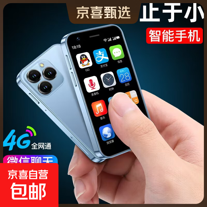 3.0英寸迷你智能手机 国家补贴 打电话可微信可支付 学生专用小尺寸小屏幕儿童手机 备用机老年机 蓝色 2+16GB 标准版 带充电器