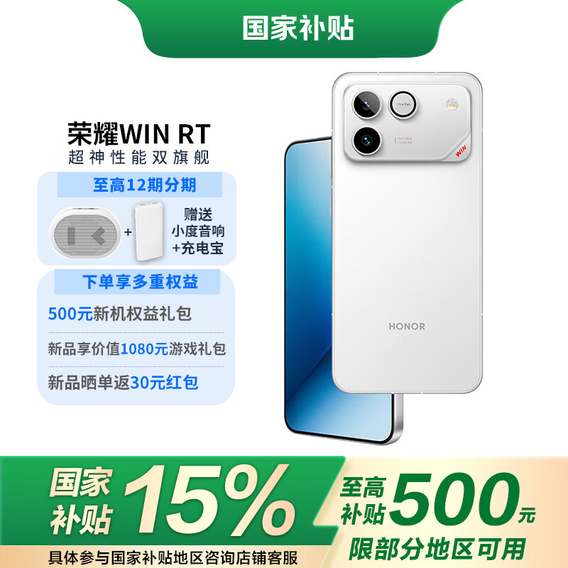 荣耀WIN RT 【张予曦同款】【国家补贴15%】骁龙8至尊旗舰芯 10000mAh青海湖电池 5G AI 新款游戏手机 指定赢 12GB+512GB 官方标配