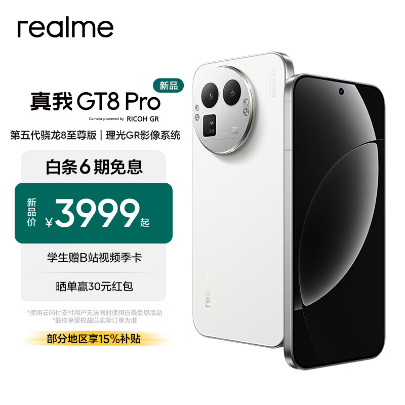 realme真我GT8 Pro OPPO 第五代骁龙8至尊版 理光GR影像系统 2亿超光影潜望 智能AI拍照游戏手机 怀特·白色 16GB+512GB