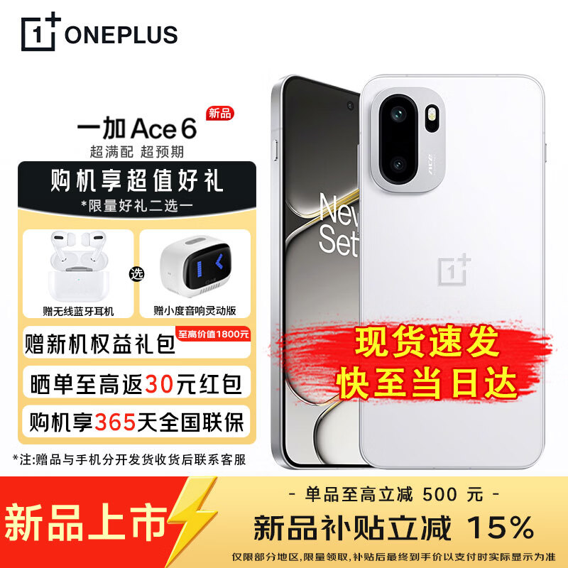 一加【国家补贴减15%】Ace6 超满配 超预期 165hz高刷 新品游戏电竞手机 骁龙8至尊版 直屏一加ace6 闪白 12GB+256GB