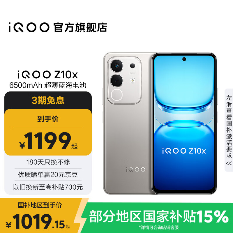 vivo iQOO Z10x 6500mAh超薄蓝海电池 天玑7300 护眼LCD屏幕 学生电竞游戏手机 国家补贴 新品上市 月岩钛 8GB 128GB 官方标配