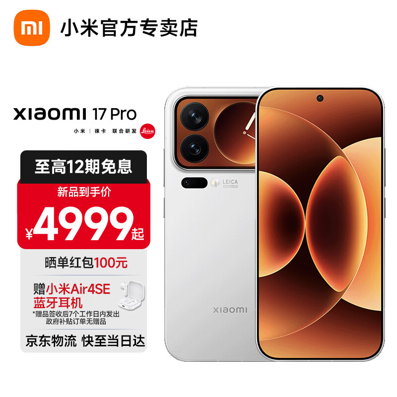 小米17pro 小米手机 小米15周年年度旗舰新品 妙享背屏 徕卡光影大师 第五代骁龙8至尊版 智能5G手机 白色 12GB+256GB 【国家补贴 免息】