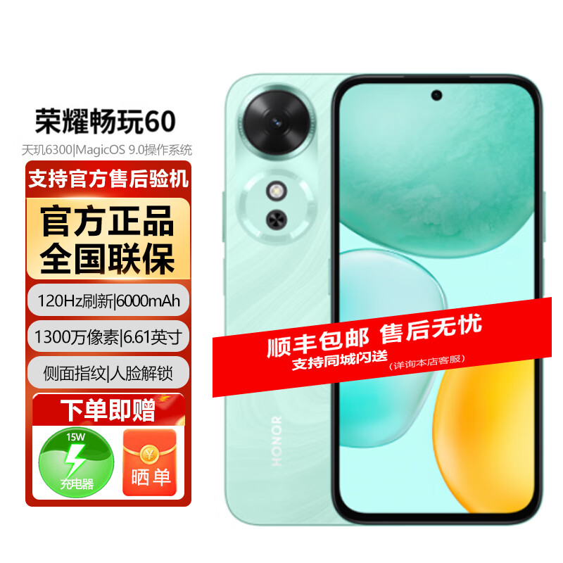 荣耀 畅玩60 双卡 全网通版【分期免息白条可选】高清大屏大内存 6000mAh长续航 2025新品上市 5G手机 晓山青【5G全网通 8GB+256GB】 标配+24期|免息