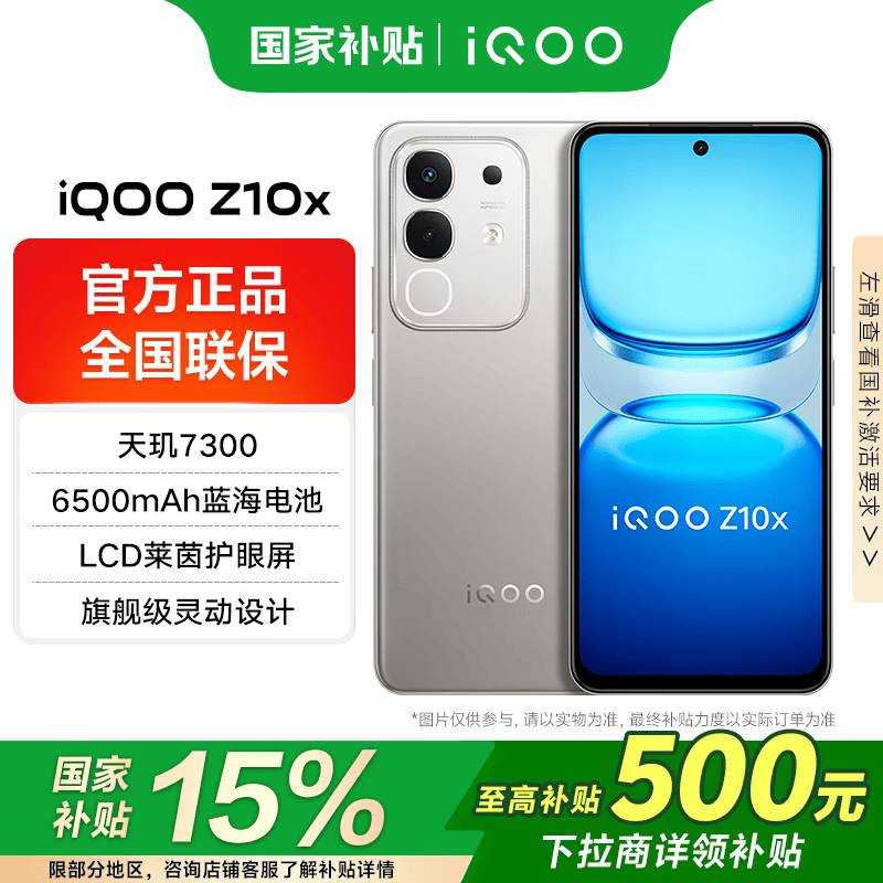 vivoiQOO Z10x国家补贴新品5G上市天玑7300电竞长续航iqooz10x手机5G游戏学生 月岩钛 8GB 128GB 官方标配