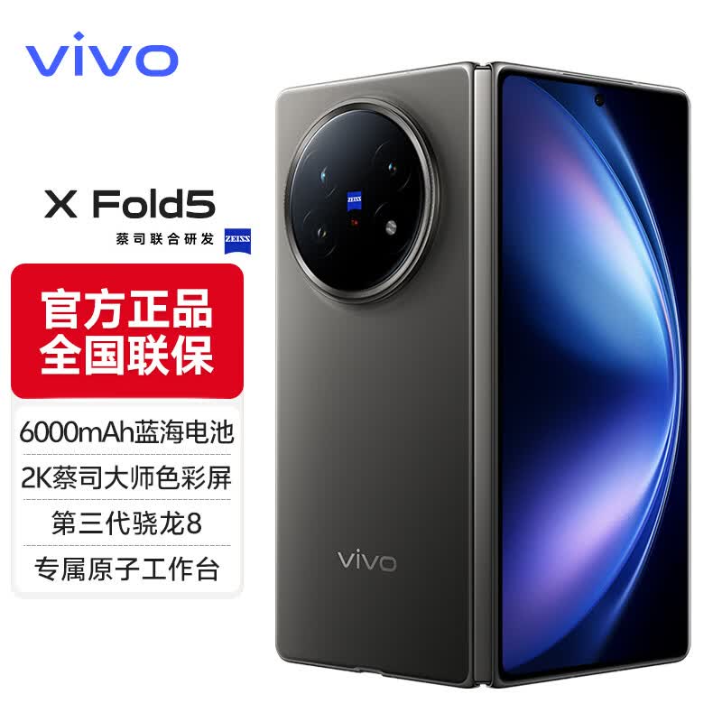 vivoX Fold5 新品折叠屏5G手机旗舰大屏商务长续航6000mAh第三代骁龙8闪充5000万像素 钛度 12GB 256GB 官方标配