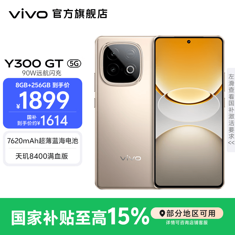 vivo Y300 GT 7620mAh超薄蓝海电池 天玑8400满血版 军工级耐用品质 AI手机 沙漠金 12GB+512GB 官方标配