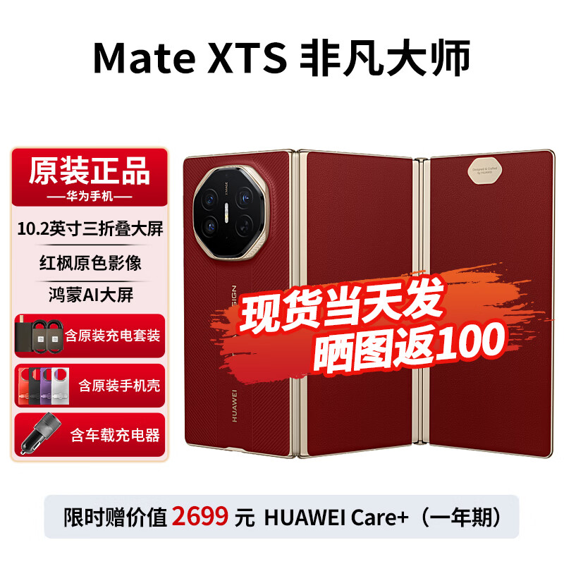 华为MateXTS非凡大师 新品三折叠屏手机 鸿蒙大屏AI 三叠式鸿蒙智能手机2025年上市 瑞红 16GB+256GB 官方标配