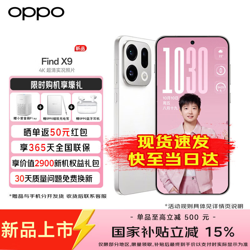 OPPO【国家补贴减15%】OPPO Find X9 新品旗舰手机 oppo find x9 全网通5g拍照手机findx9手机oppo 霜白 12GB+256GB 官方标配(好礼三选一)