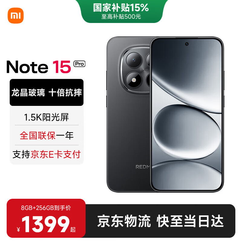 小米REDMI 红米note15pro 国家补贴 小米红米新品5G手机 子夜黑 8GB+256GB 【官方标配】