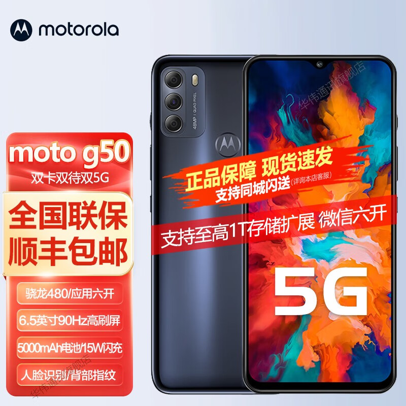 摩托罗拉Moto G50 应用多开 6.5英寸 5G手机 G50 夜空灰 8GB+128GB