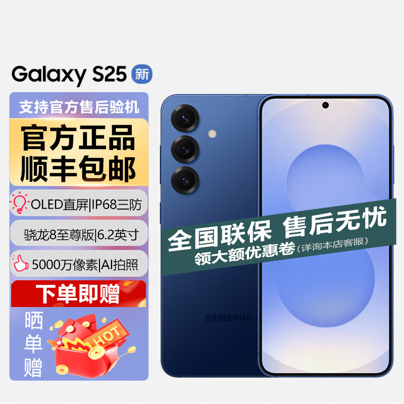三星Samsung Galaxy S25 【分期免息白条可选】超拟人AI助理 AI拍照 翻译手机 游戏手机 远海蓝12GB+512GB 标配+24期|免息