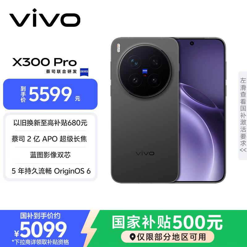 vivoX300 Pro 新品5G手机 蔡司2亿APO超级长焦 蓝图影像双芯 5年持久流畅OriginOS 6 简单白 16GB+512GB 官方标配