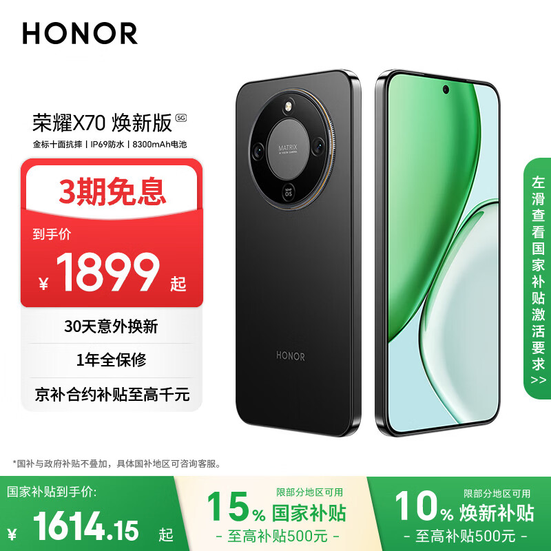 荣耀X70 焕新版 8+256 幻夜黑 十面抗摔 8300mAh青海湖电池 IP69防水 荣耀绿洲护眼屏 AI手机 国家补贴