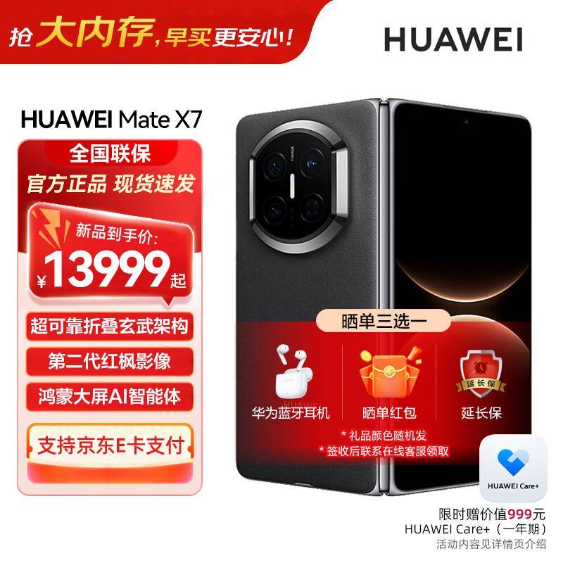 HUAWEI Mate X7 麒麟9030 Pro 超可靠折叠玄武架构 华为折叠屏鸿蒙手机 曜石黑 16GB+1TB(典藏版) 官方标配