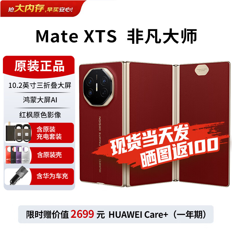 华为matexts非凡大师 新品三折叠屏手机 大屏生产力 鸿蒙大屏AI 三叠式鸿蒙智能手机 2025年上市 瑞红 全网通(16GB+1TB) 官方标配