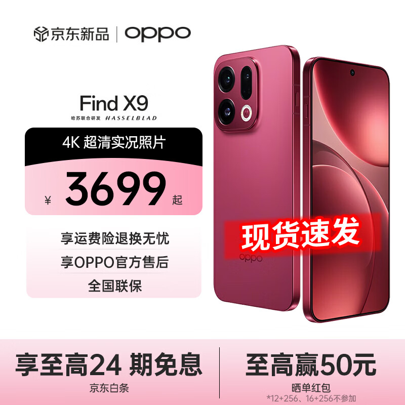 OPPO Find X9 新品4K超清实况照片 7025mAh 天玑9500 5G旗舰手机 追光红 12GB+256GB 官方标配【全国联保】