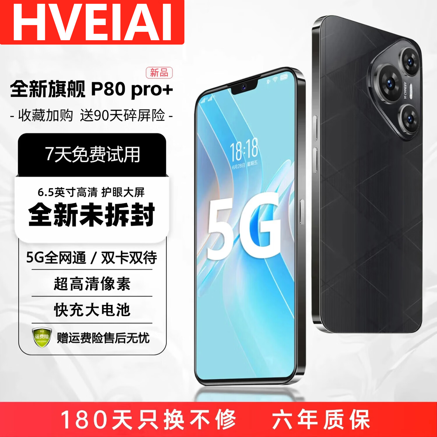 HVEIAI手机1TB大内存2026全新一代超高性能全网通5G双卡7800mAh快充长续航拍照十面抗摔全国质保6年 羽砂黑 16GB+512GB 官方标配