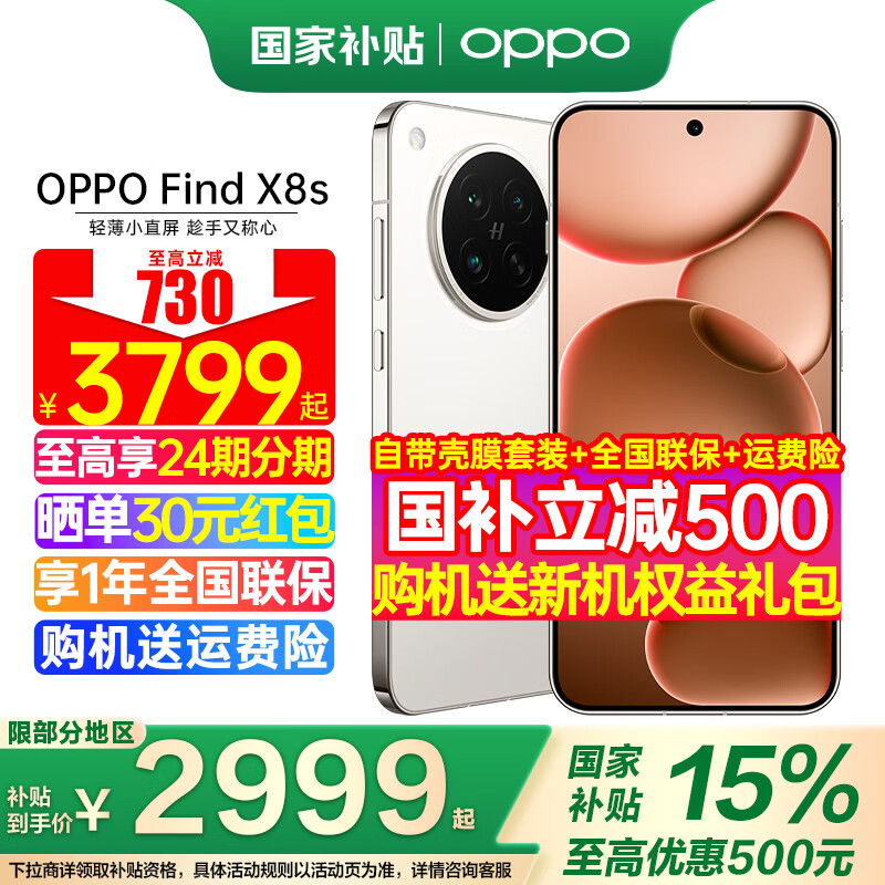 OPPO【国家补贴15%】OPPO Find X8s 新款旗舰手机 oppofindx8s oppo全网通5g手机 findx8 s 月光白 12GB+256GB 官方标配【全国联保】