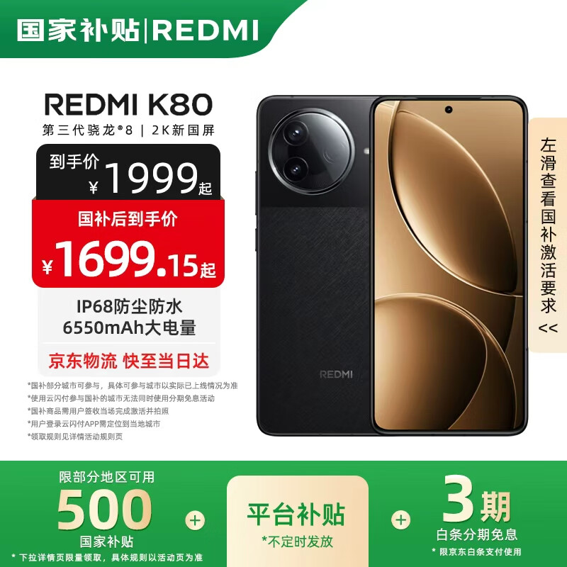 小米REDMI 红米K80 国家补贴 新品5G小米红米手机 玄夜黑 12GB+256GB