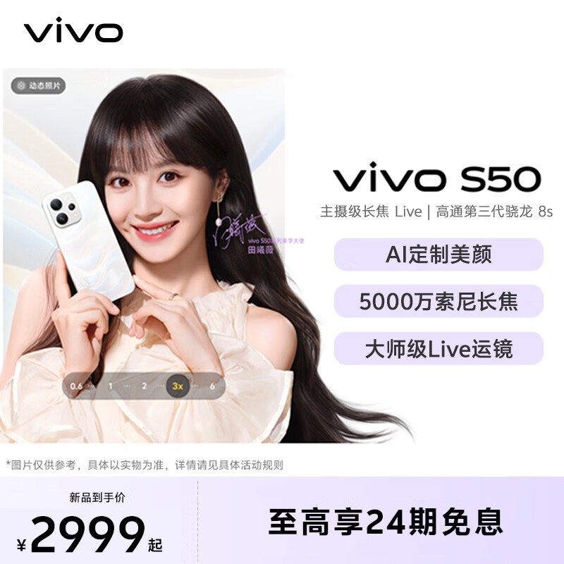 vivo S50 田曦薇同款 主摄级长焦Live 高通第三代骁龙8s 湿手秒开超声波指纹 学生5G智能拍照游戏手机 告白 12+256GB